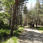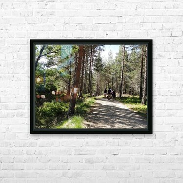 I took this photo during a lovely spring nature walk through the Scottish Highlands. Features a group of people walking along a sunlit forest path sur...[+]