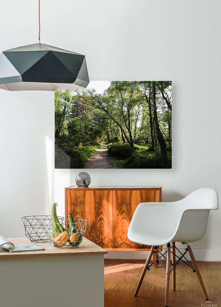 I took this photo during a lovely spring nature walk through the Scottish Highlands. Features a narrow dirt path winding through a lush Birch forest, ...[+]
