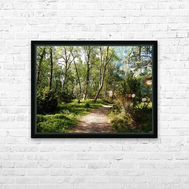 I took this photo during a lovely spring walk in the Scottish Highlands. Features a winding dirt path meandering through a lush, green forest, surroun...[+]