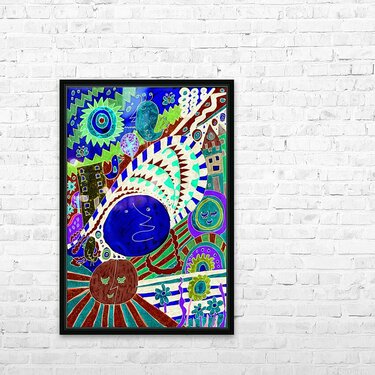 Originally a hand drawn design created from imagination using coloured ink pens and paper. Laterally digitally manipulated into vibrant colors and whi...[+]