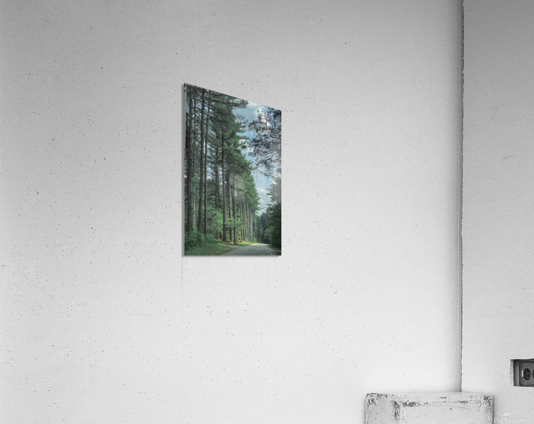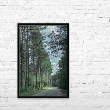 A serene capture of tall trees lining the winding roads of the Adirondack Mountains near Mountain View-Indian Lakes. I photographed this peaceful scen...[+]