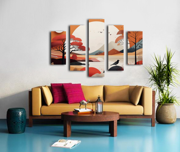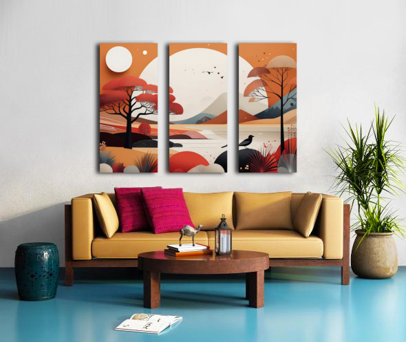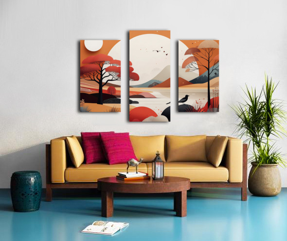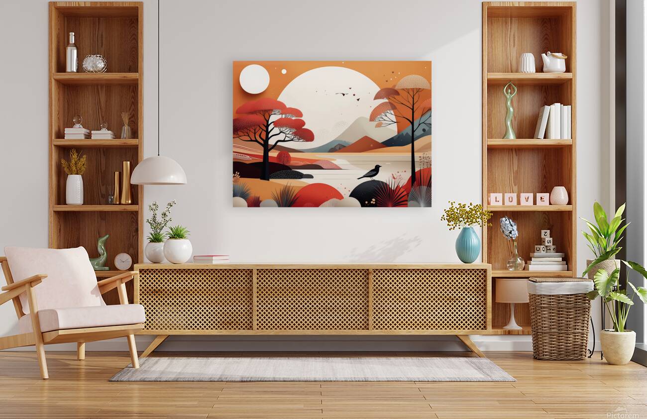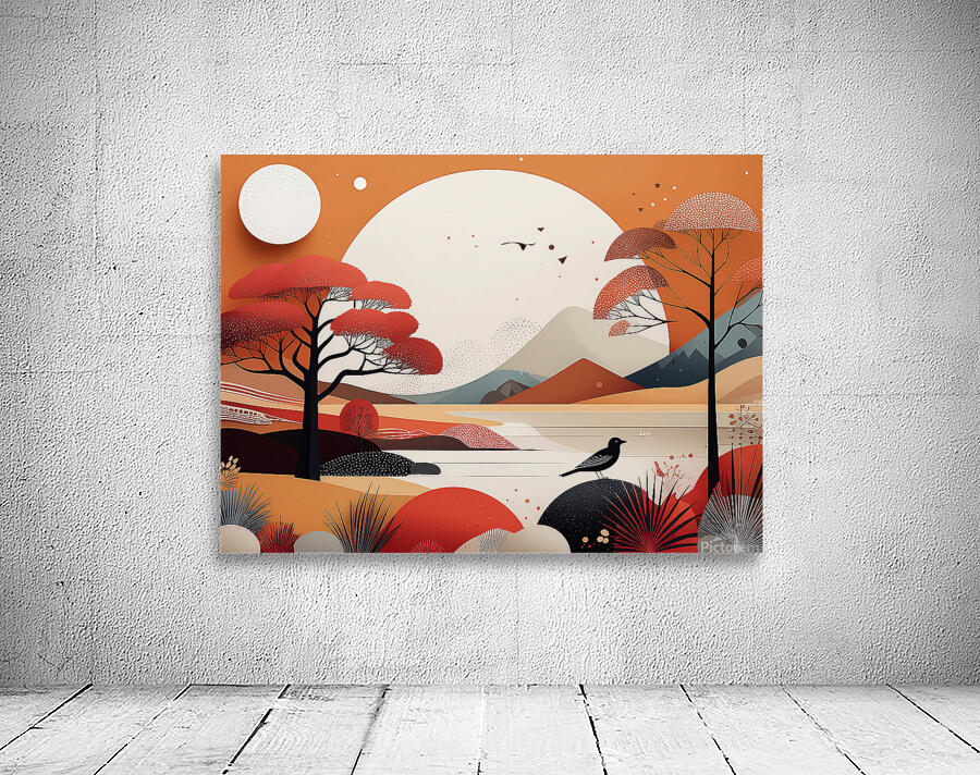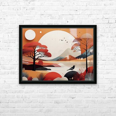 Immerse yourself in the tranquility of this stylized landscape where Japanese influence melds with an autumnal palette. Organic shapes and warm tones ...[+]