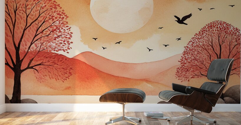Be enveloped by the serene beauty of this Japanese watercolor landscape. An autumnal sun bathes the scene in warm tones reflecting on tranquil waters ...[+]