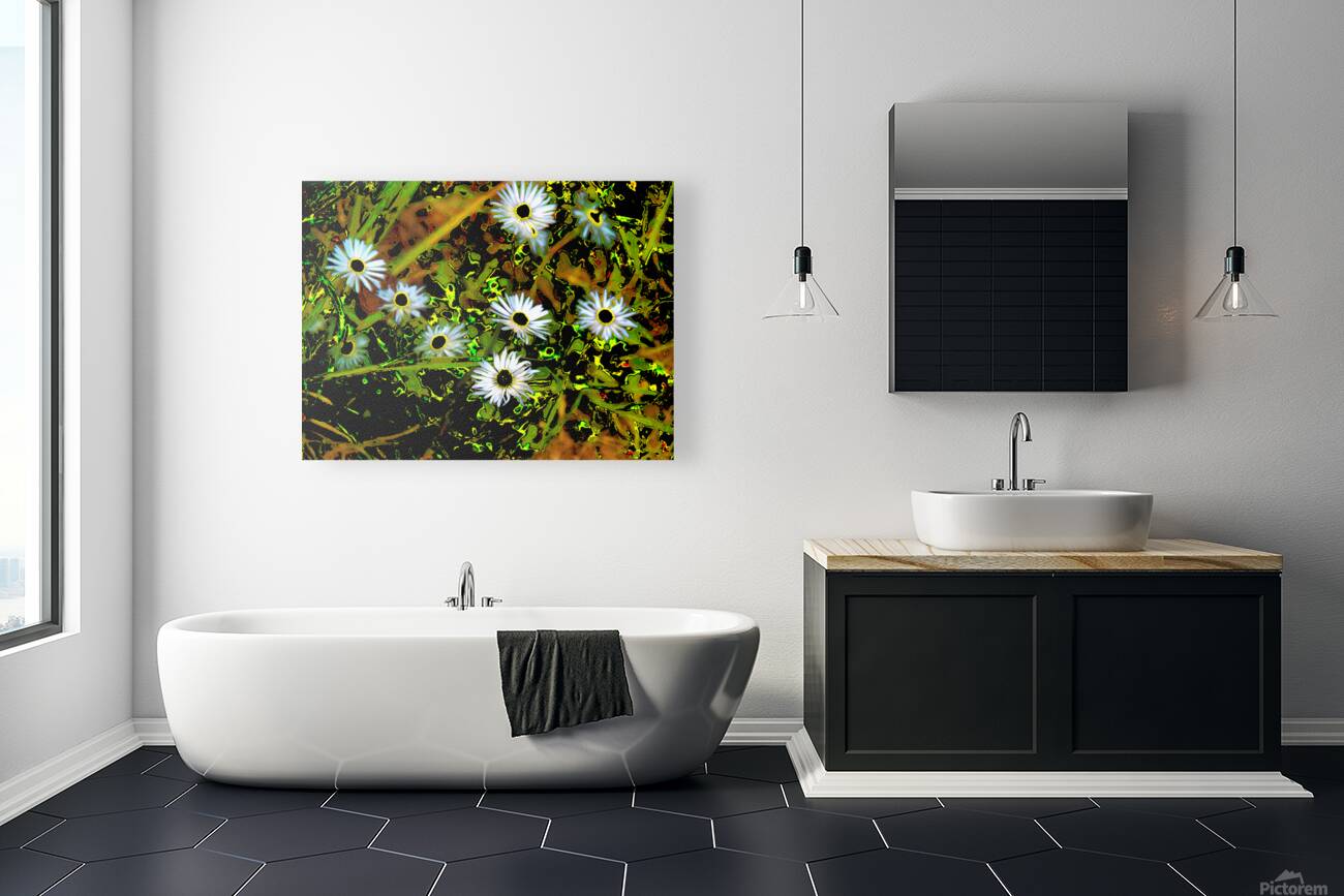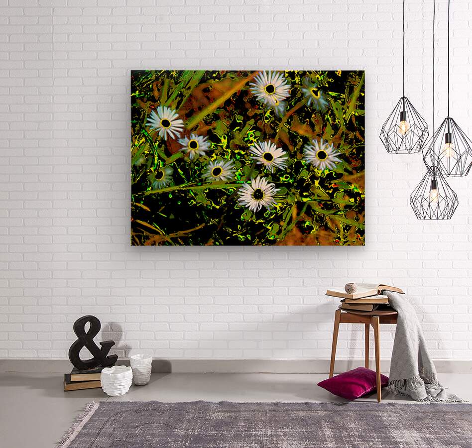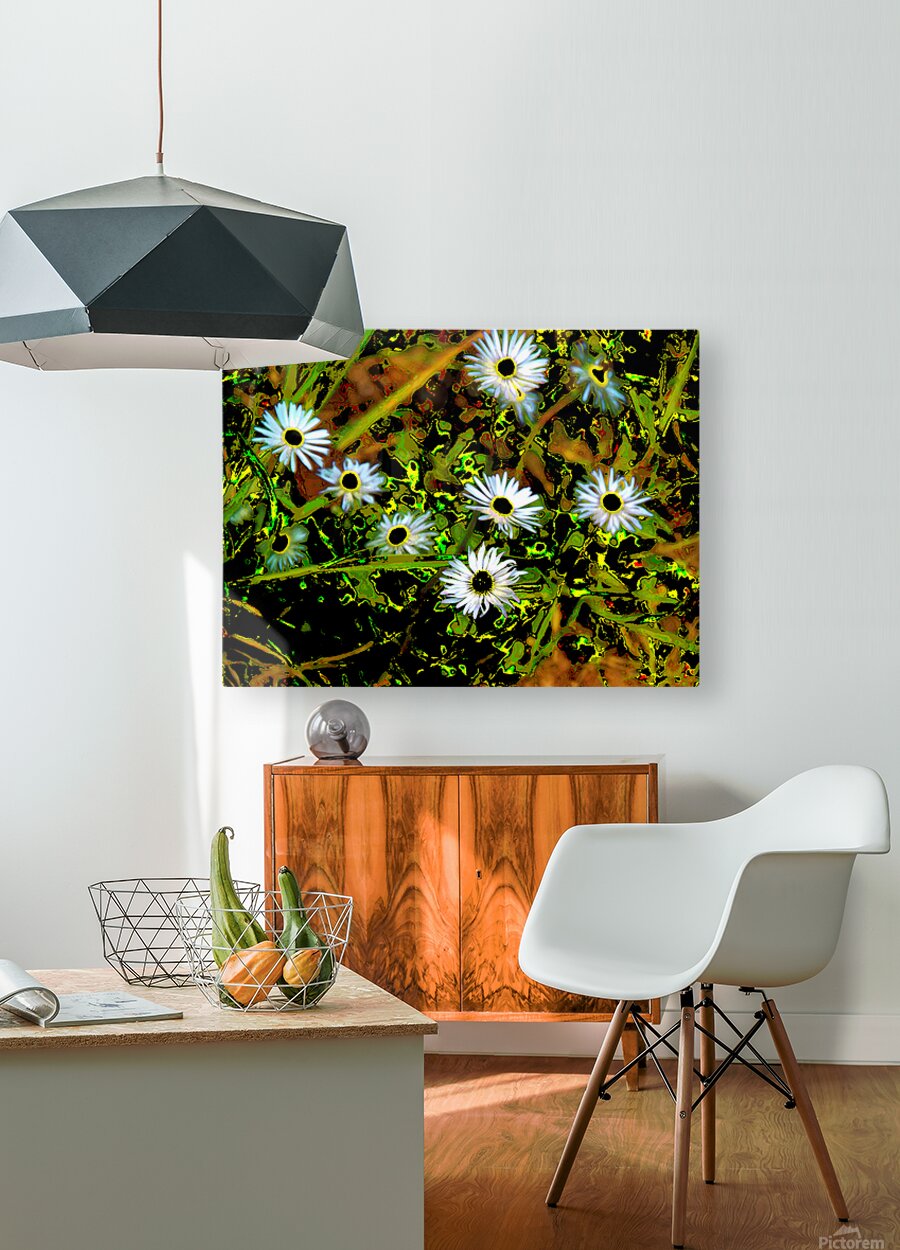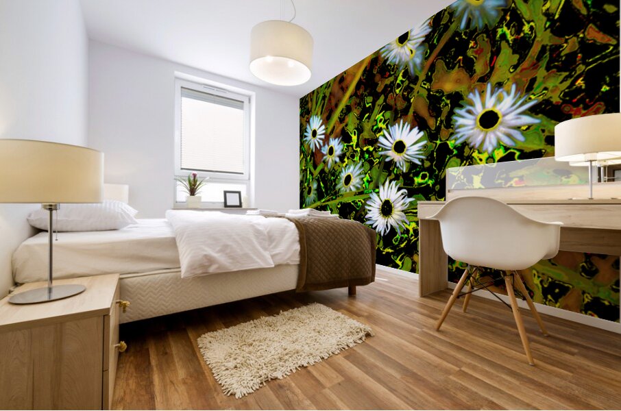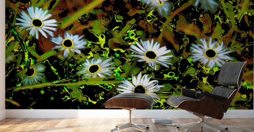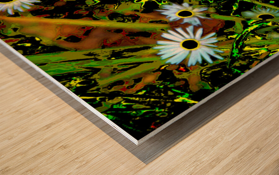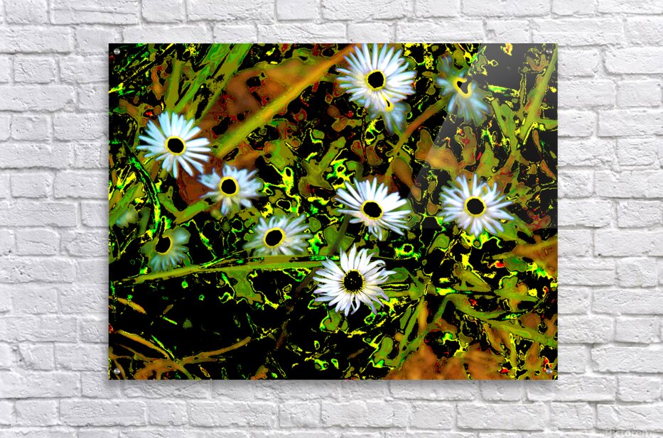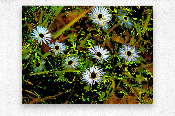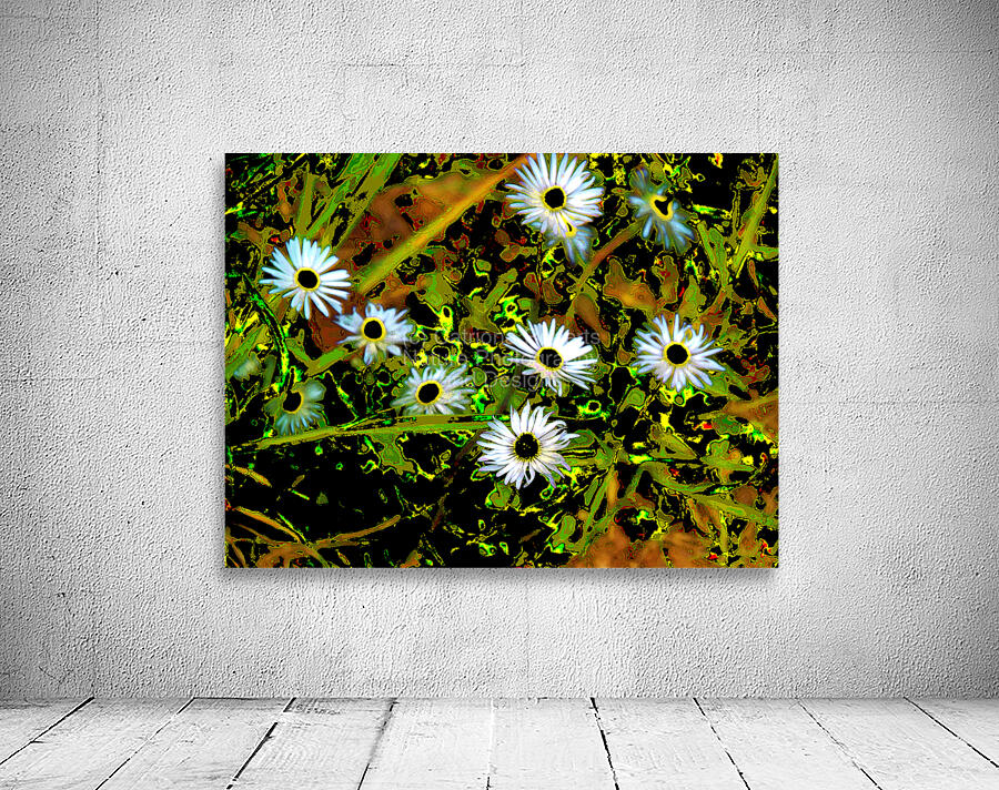 I originally took a photo of a lovely cluster of wild Daisy flowers during a spring nature walk through the Scottish Highlands. The urge to further explore the possibilities this image could reach was strong and laterally via some digital manipulation, this stunning piece of contemporary floral art emerged. Features white Daisies scattered across a vibrant and abstract background of greens and browns. The colors create a striking contrast, highlighting the delicate petals of the flowers.