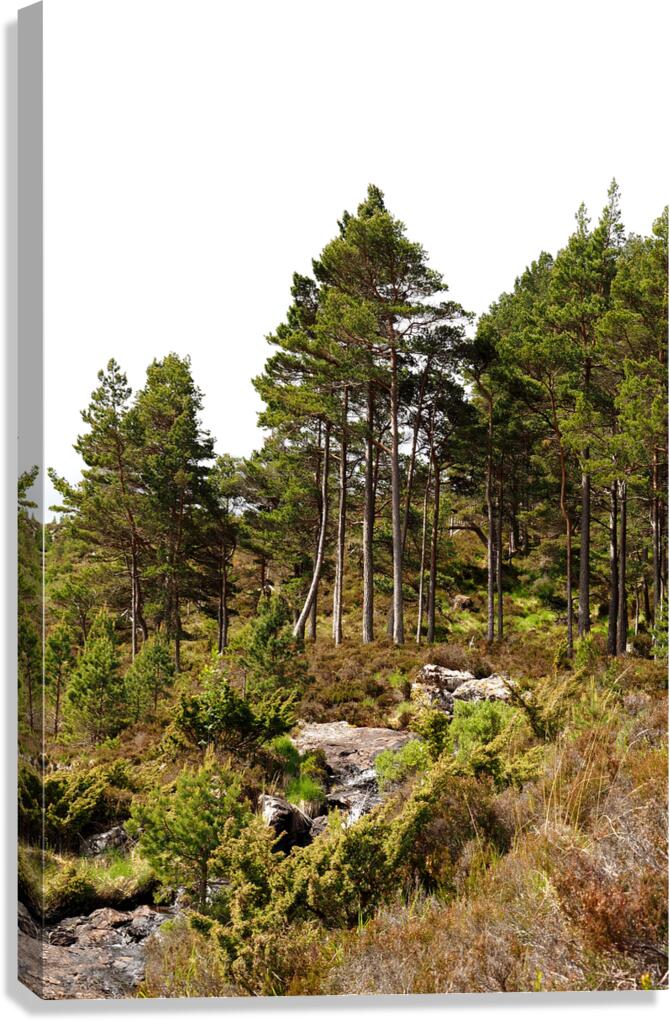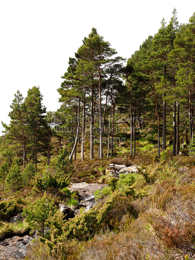 I took this photo during a lovely spring nature walk through the Scottish Highlands. Features tall Pine trees rising from a lush, rocky terrain, creat...[+]