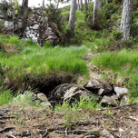 I took this photo during a lovely spring nature walk through the Scottish Highlands. Features tall Pine trees standing densely packed in a lush, gree...[+]