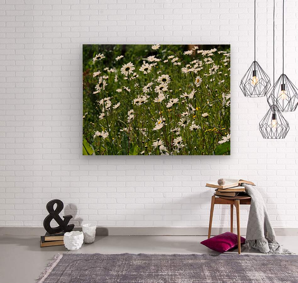 I took this photo during a lovely spring nature walk through the Scottish Highlands. Features a field of Daisies blooming vibrantly under the sunlight, creating a serene and picturesque scene. The green foliage adds a lush contrast to the white petals and yellow centers of the flowers.