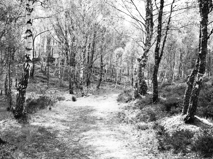 I took this photo during a lovely spring nature walk through the Scottish Highlands. Features a serene Birch forest path winding through a dense grove...[+]