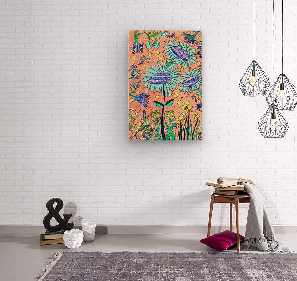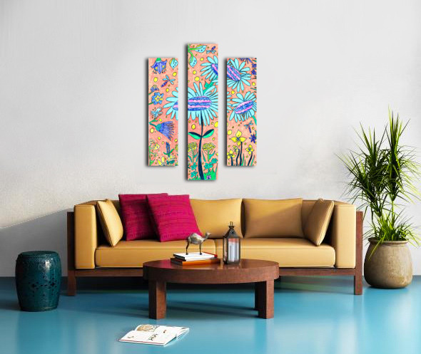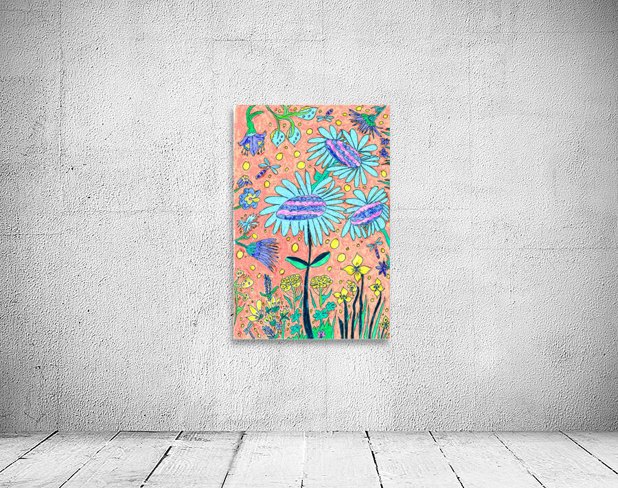 Abstract Colourful Flowers and Dragonflies Canvas print