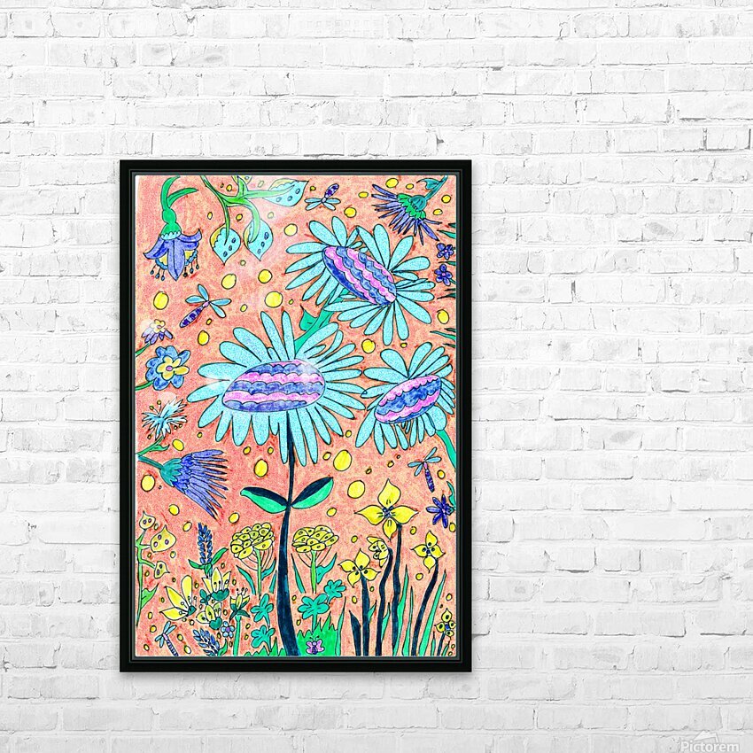 Abstract Colourful Flowers and Dragonflies Picture Frame Printing