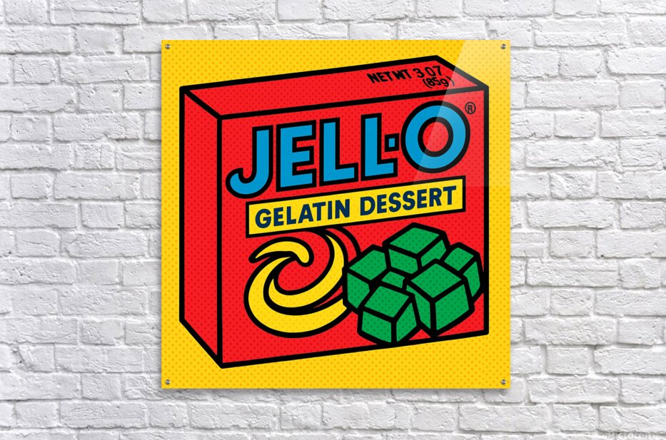 Description: Bold vibrant and unapologetically retro this Warhol-inspired pop art reimagines a classic JELLO packaging with electrifying colors and iconic repetition. The artwork bursts with high-contrast hues playful composition and nostalgic commercial flair transforming an everyday staple into a striking visual statement. A true homage to consumer culture vintage advertising and the playful spirit of pop art this piece blends mass production aesthetics with artistic irreverence—bringing movement energy and fun to the canvas.