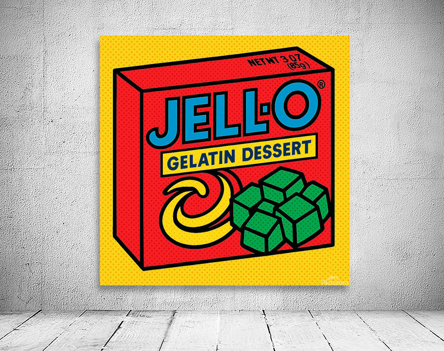 Description: Bold vibrant and unapologetically retro this Warhol-inspired pop art reimagines a classic JELLO packaging with electrifying colors and ic...[+]