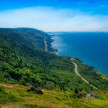 One could sit here all day long! View of the Cabot Trail from the top of Cap Rouge in the Cape Breton Highlands National Park.