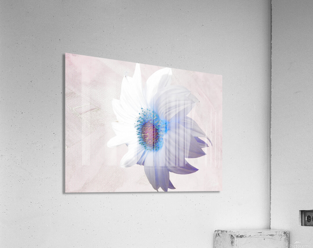 ABOUT THIS ARTWORK: DELICATE WHITE SUNFLOWER ON A PALE ABSTRACT BACKGROUND