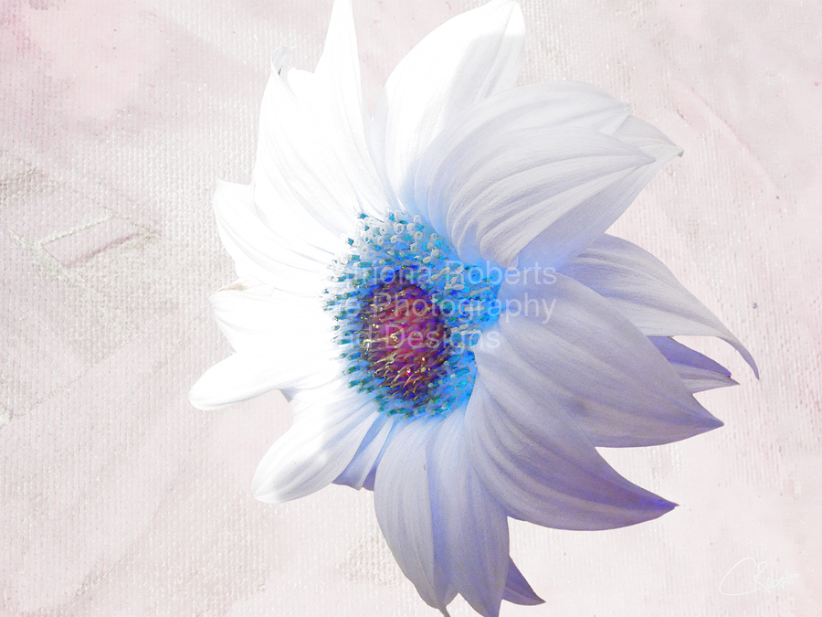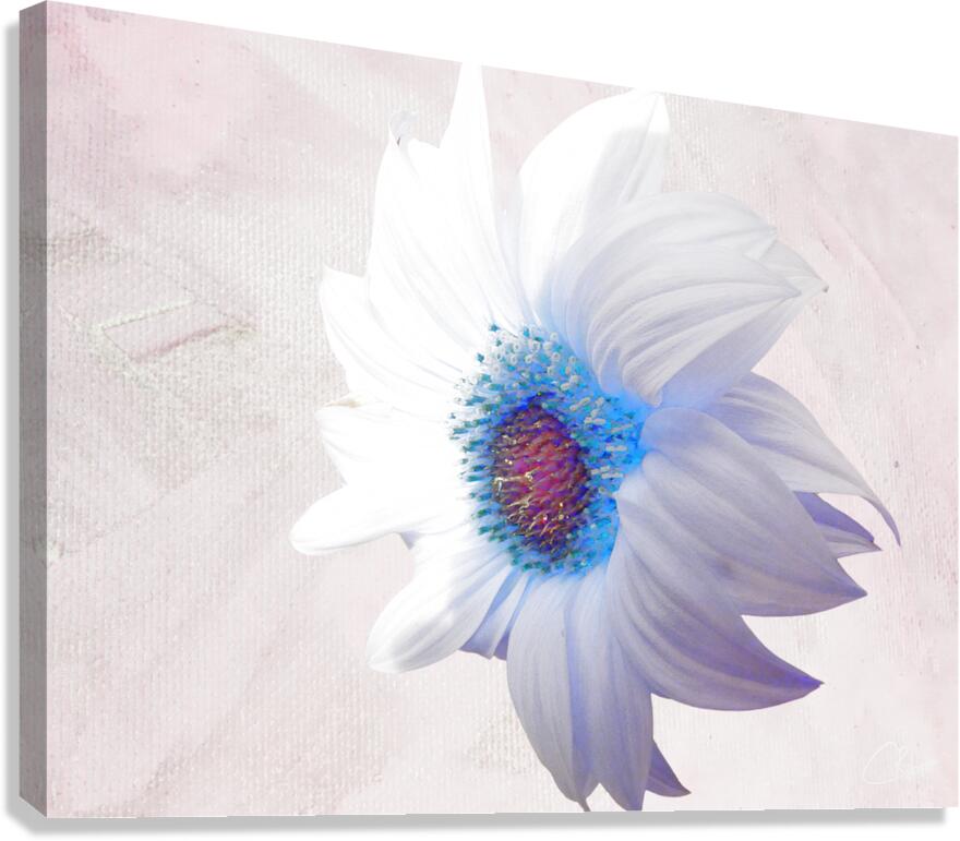 DELICATE WHITE SUNFLOWER ON  A PALE ABSTRACT BACKGROUND CATRIONA ROBERTS NATURE PHOTOGRAPHY AND DESIGNS  Canvas Print