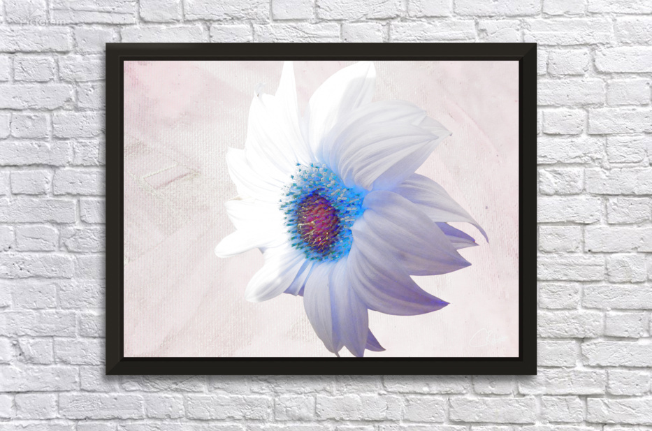 Delicate White Sunflower on  a Pale Abstract Background Frame print