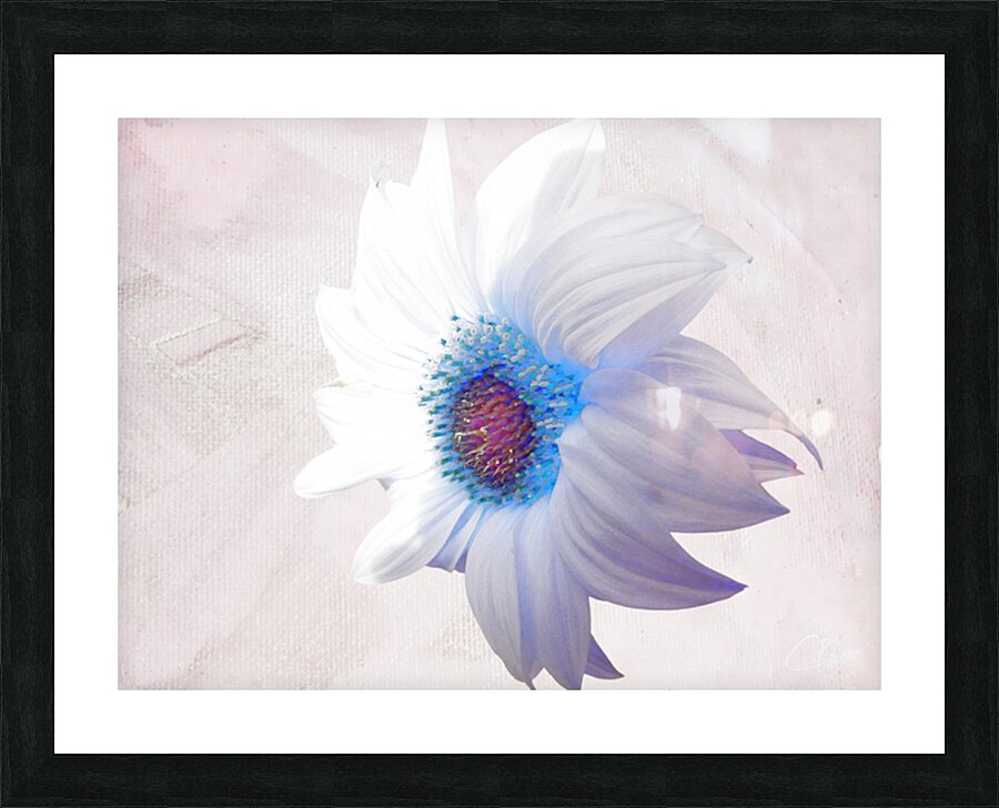 Delicate White Sunflower on  a Pale Abstract Background Picture Frame Printing