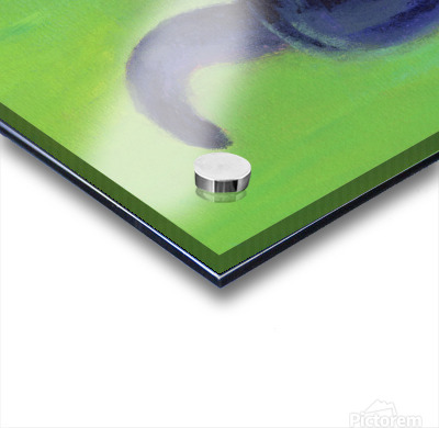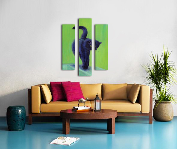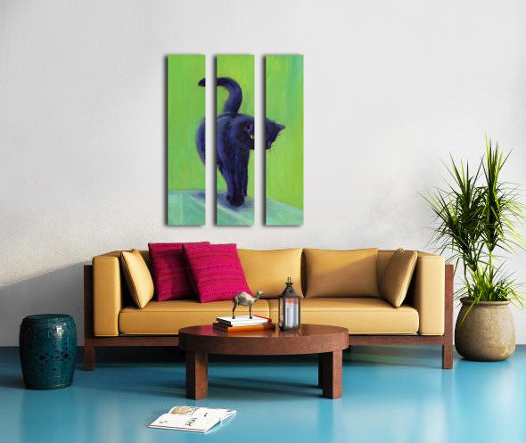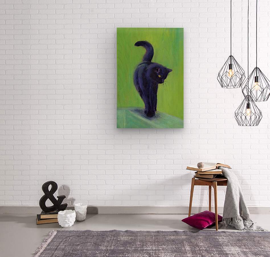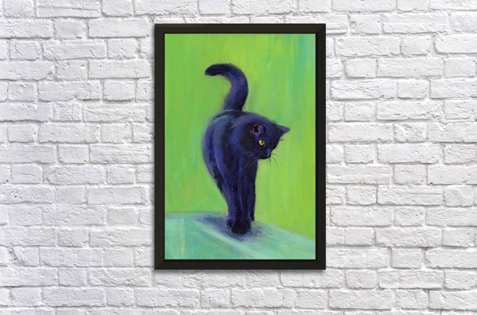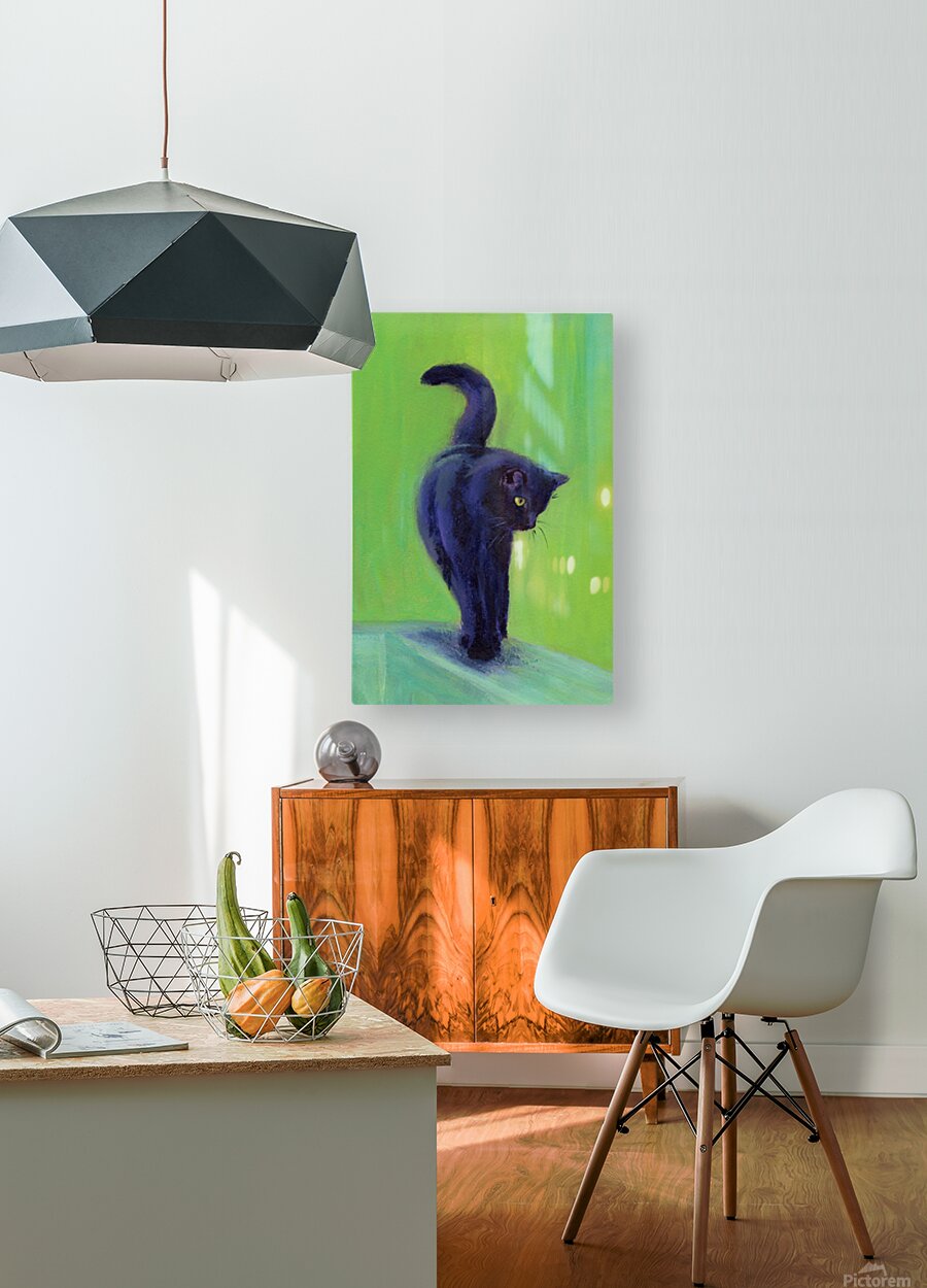 On the catwalk is a hand-painted acrylic painting in portrait format by artist Karen Kaspar. A black cat balances on the thin bar of a wooden fence. T...[+]