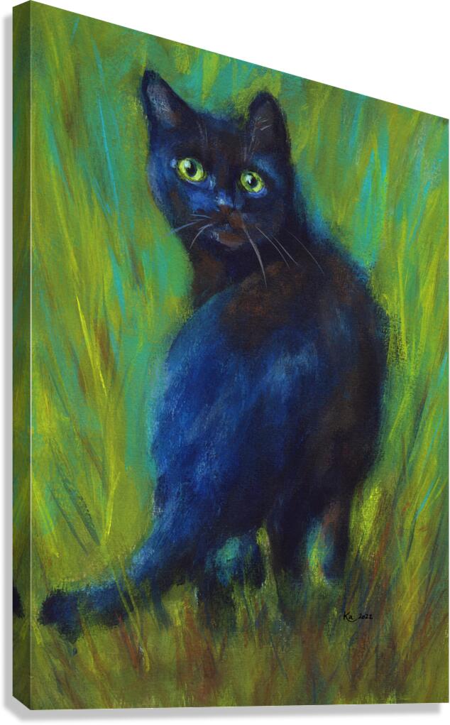 BLACK CAT IN THE GREEN GRASS ACRYLIC PAINTING  KAREN KASPAR  Canvas Print