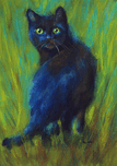 BLACK CAT IN THE GREEN GRASS ACRYLIC PAINTING