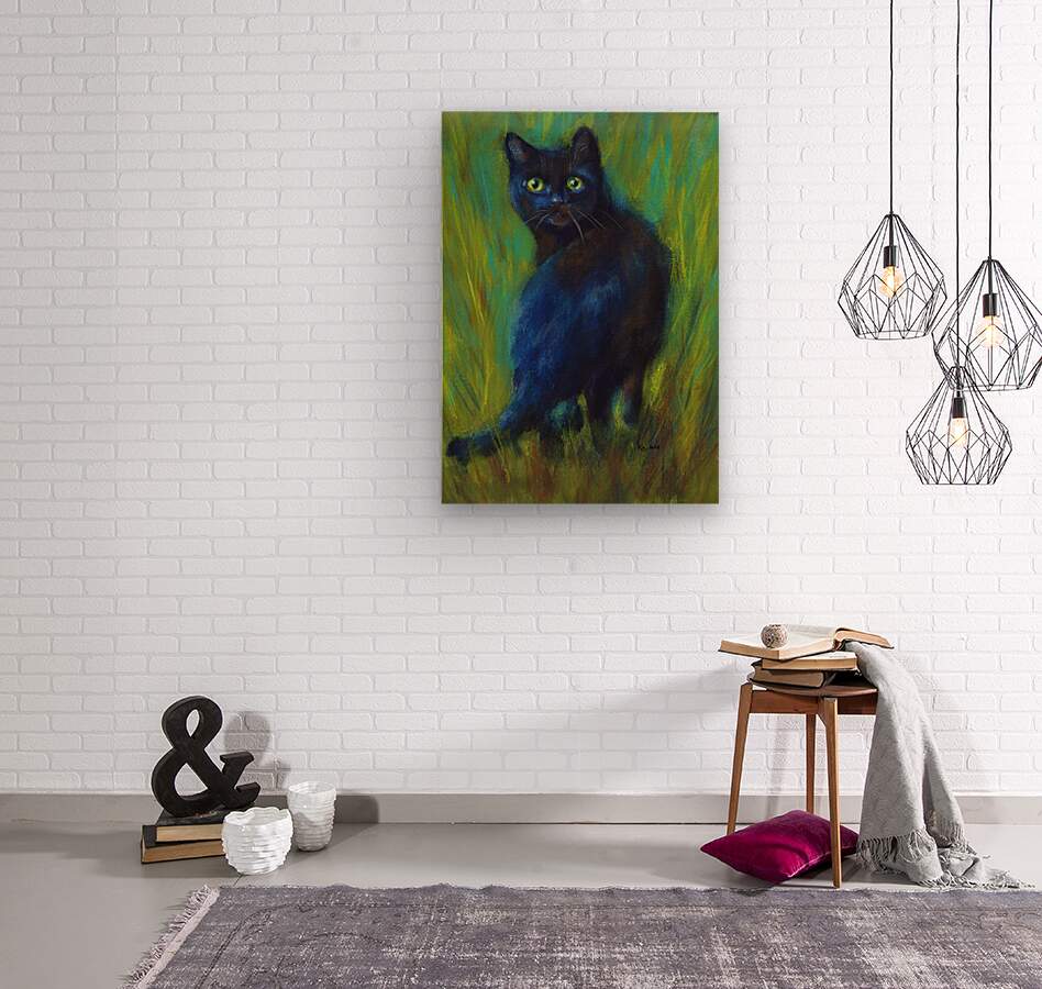 Black cat in the green grass acrylic painting  Wall Decor Frame