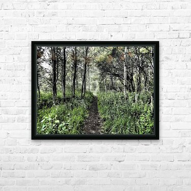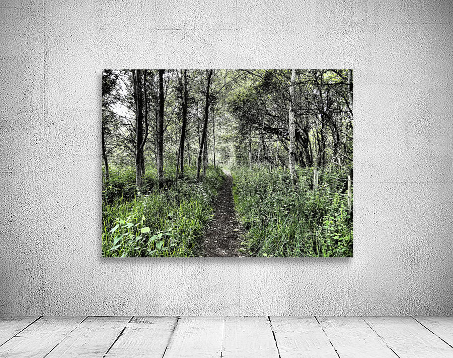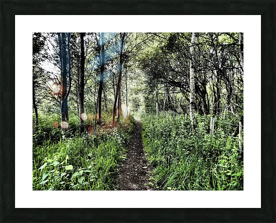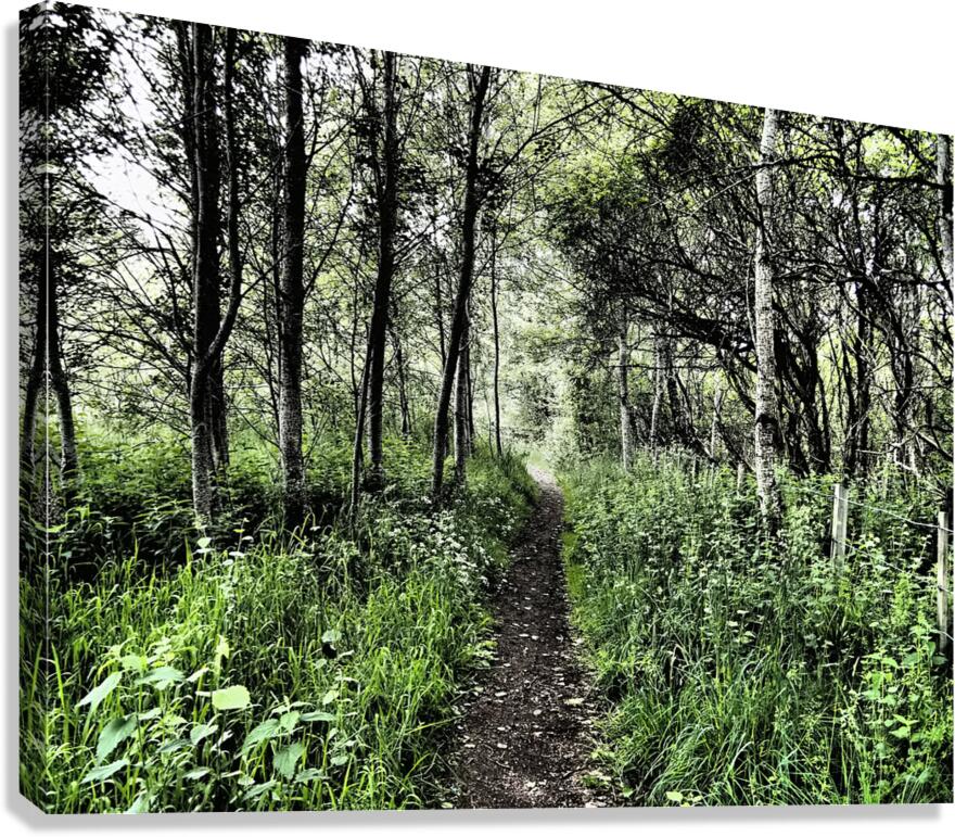 I took this photo during a lovely spring nature walk through the Scottish Highlands. Features a narrow dirt path winding through a lush, green forest ...[+]