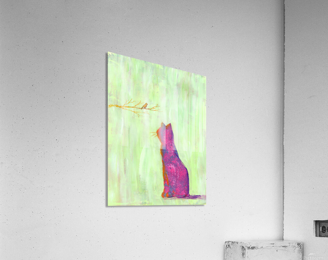 Get this artwork "Pink cat and orange bird acrylic painting" in a framed print.