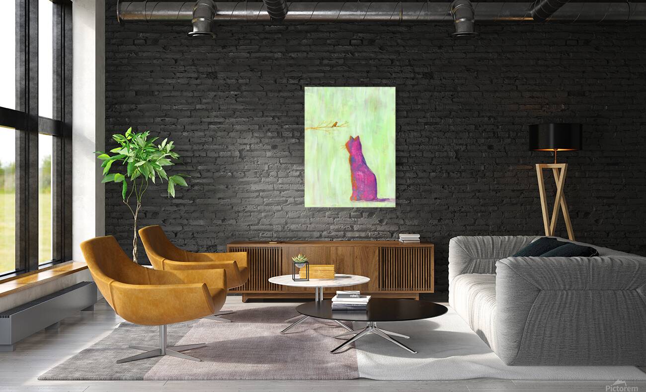 Pink cat and orange bird acrylic painting Picture Frame Printing