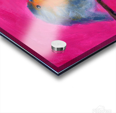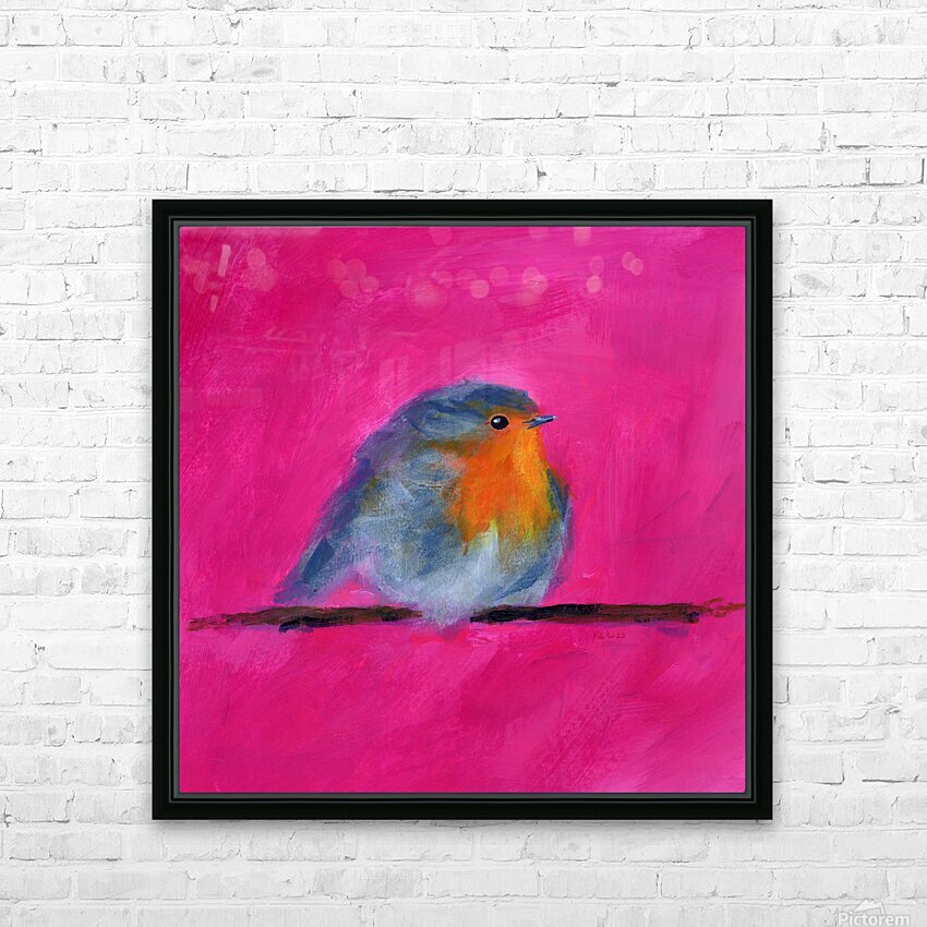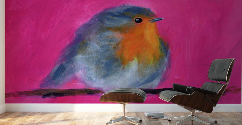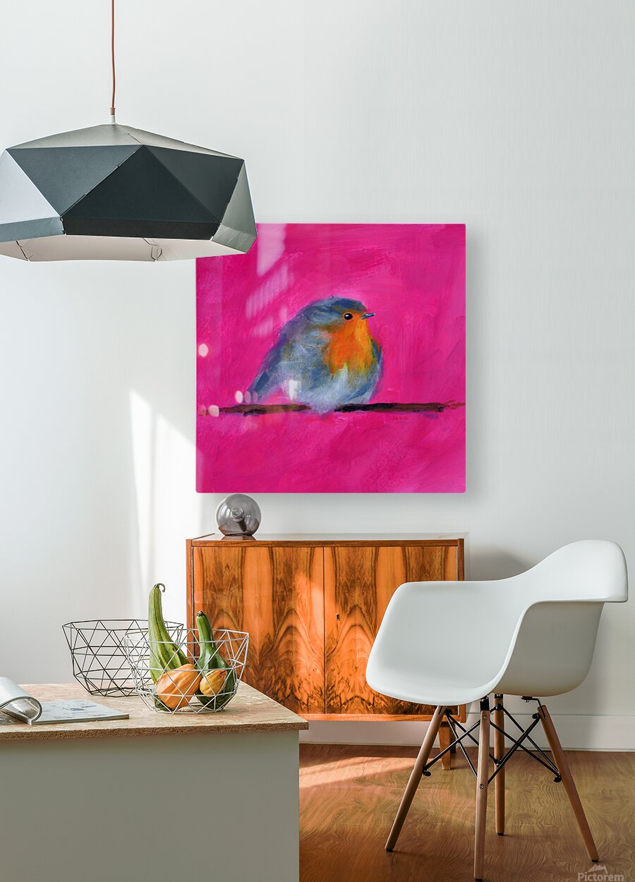 Little Robin two is an acrylic painting in contemporary square format by artist Karen Kaspar. A cute fluffy little European Robin bird is sitting on a branch and is looking to the right side.The background is abstracted in vibrant shades of pink. Little Robin two and Little Robin are a perfect pair. Fine art prints and home decor from original artwork paintings and photography by artist Karen Kaspar. 394