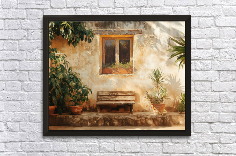 Spanish Courtyard HD Sublimation Metal print with Decorating Float Frame (BOX)