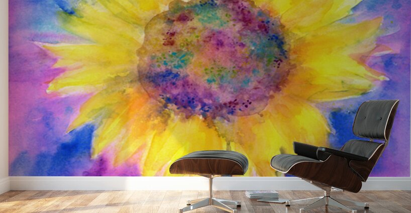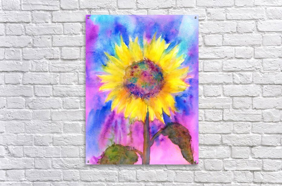 Rainbow sunflower is a watercolor painting in vertical format painted by artist Karen Kaspar. A happy yellow and orange sunflower is growing on a colorful background in vibrant shades of pink, purple and blue. Last summer I was so fascinated of the beautiful bright yellow sunflowers blooming in the summer gardens and in sunflower fields around me. I realized, that I haven`t painted sunflowers before, so I decided to challenge myself and do a series of sunflower paintings in many different techniques, experimenting with various media like watercolor, soft pastels, acrylic, oil pastels, pencil, ink, charcoal..., trying different papers and styles. That was great fun. This painting is part of this flower series. Fine art prints and home decor from original artwork by Karen Kaspar. sunflower, flower, yellow flower, stilllife, summer, summer garden, floral, painting, watercolor, watercolour, abstract, nature, bloom, green, blue, yellow, orange, sunny, beauty, watercolor floral,rainbow 270