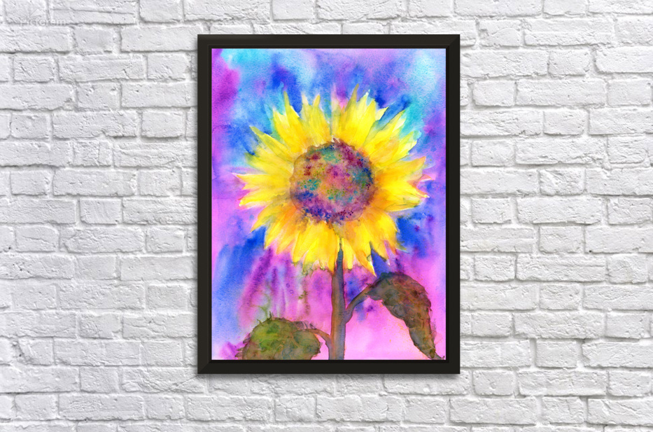 Rainbow sunflower watercolor painting Picture Frame Printing