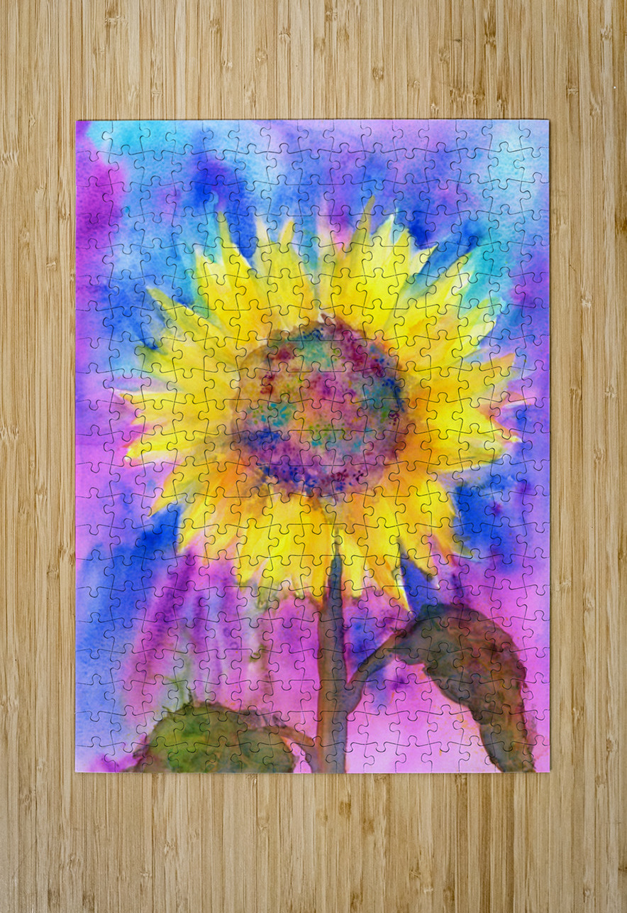 Rainbow sunflower watercolor painting Karen Kaspar Puzzle printing