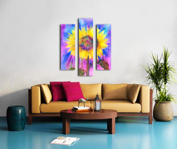 Rainbow sunflower watercolor painting Canvas print