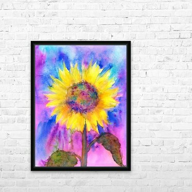ABOUT THIS ARTWORK: RAINBOW SUNFLOWER WATERCOLOR PAINTING