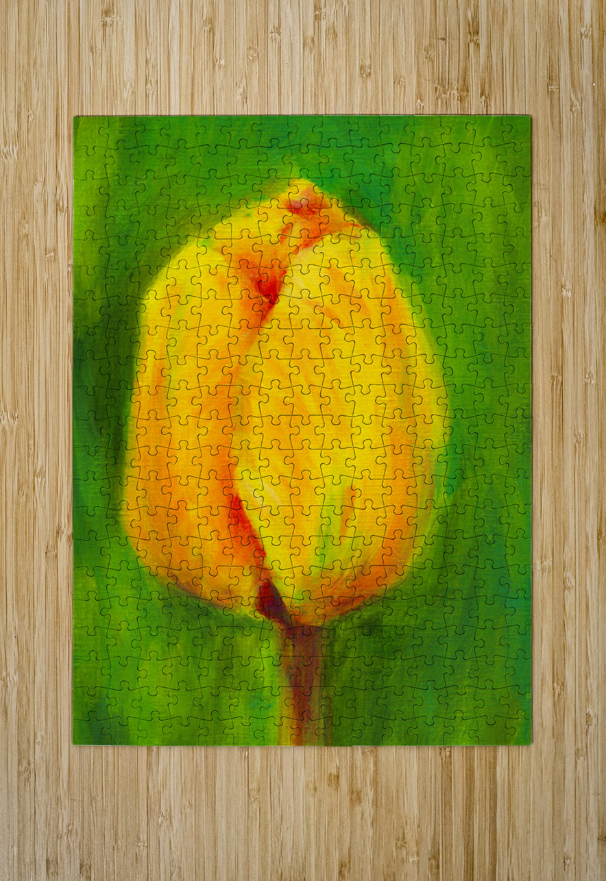 Yellow tulip triptych middle acrylic painting  Karen Kaspar Puzzle