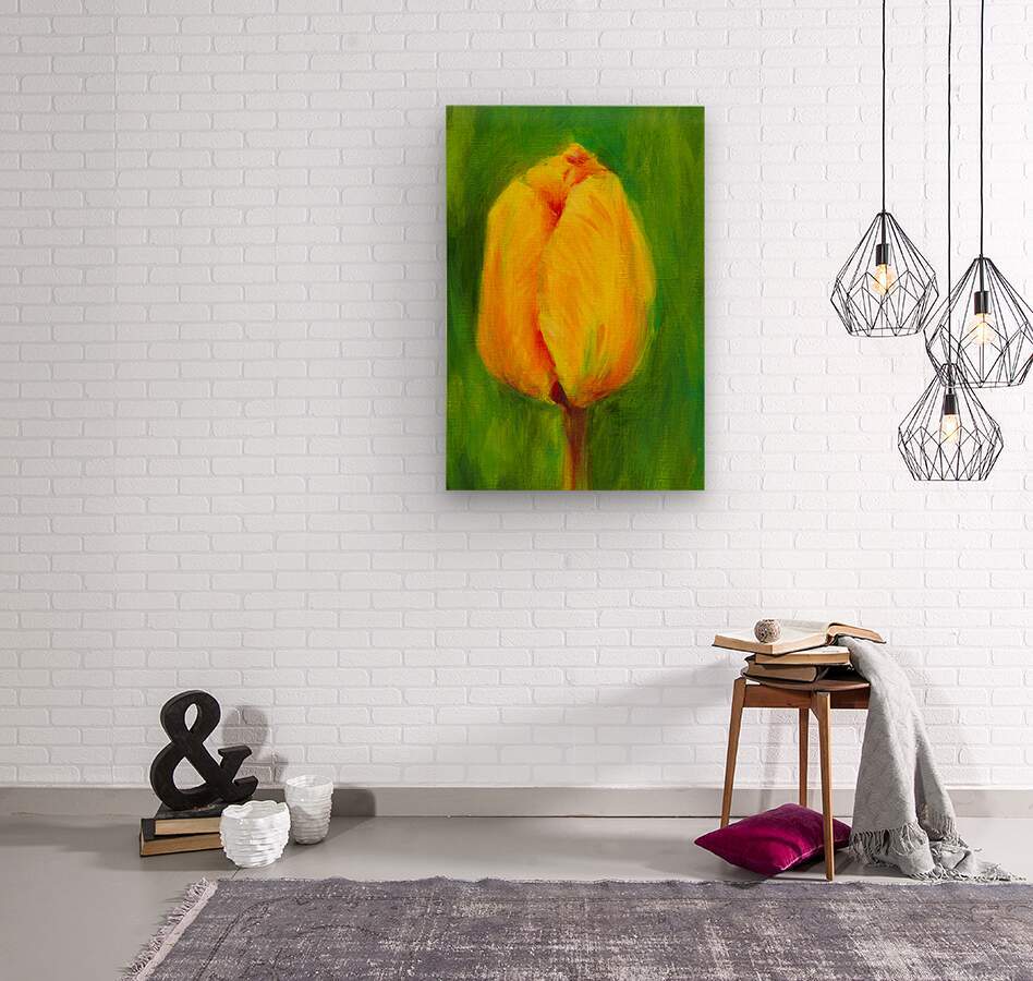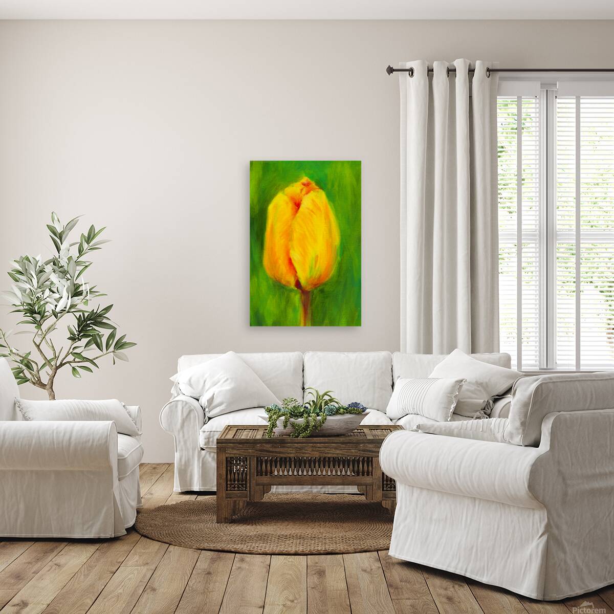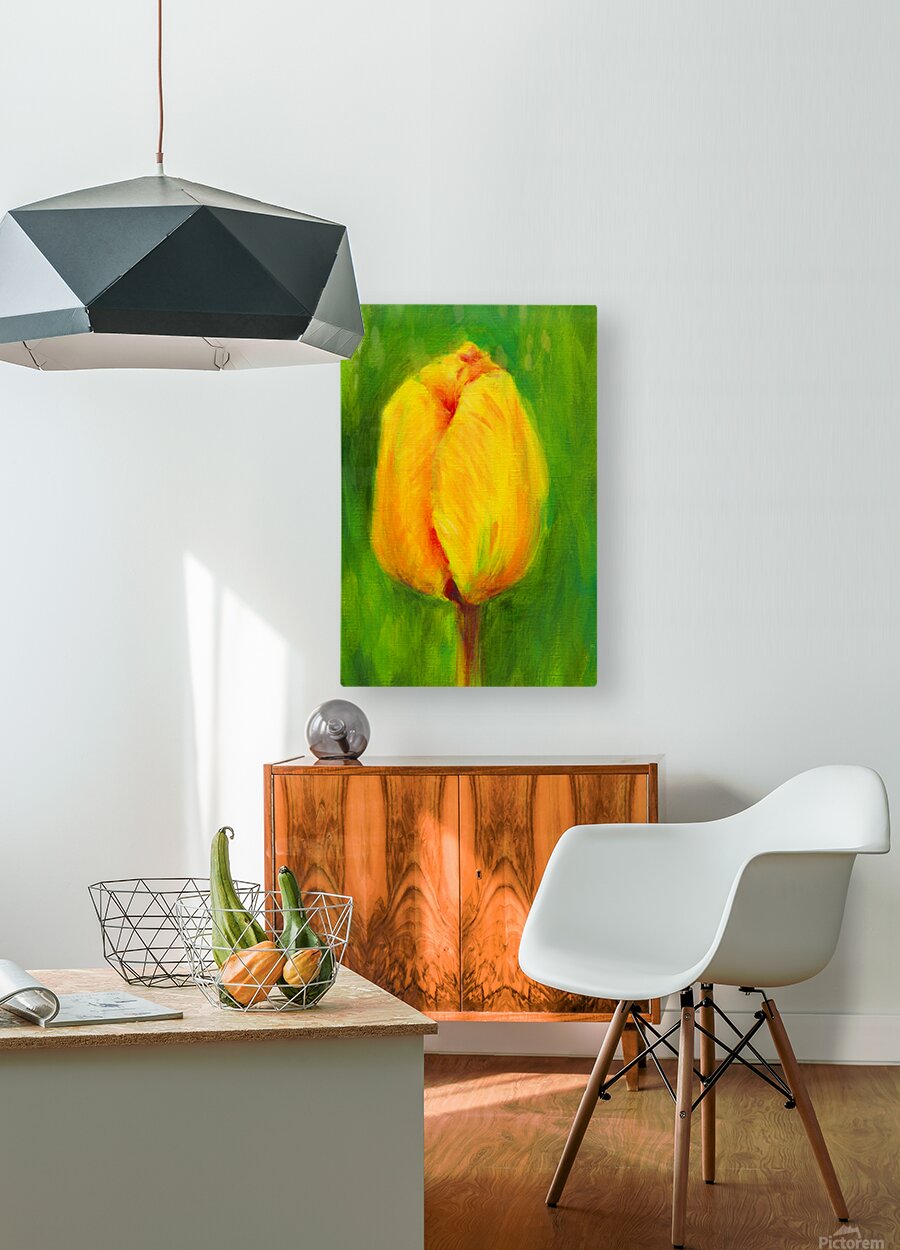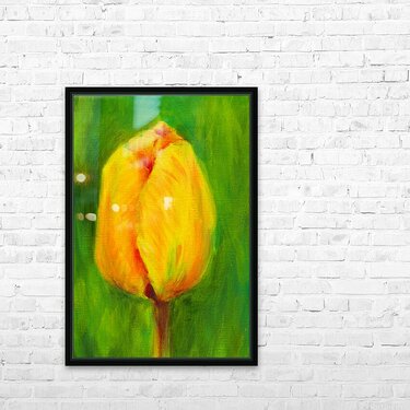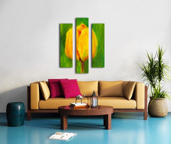 Get this artwork "Yellow tulip triptych middle acrylic painting " in a framed print.
