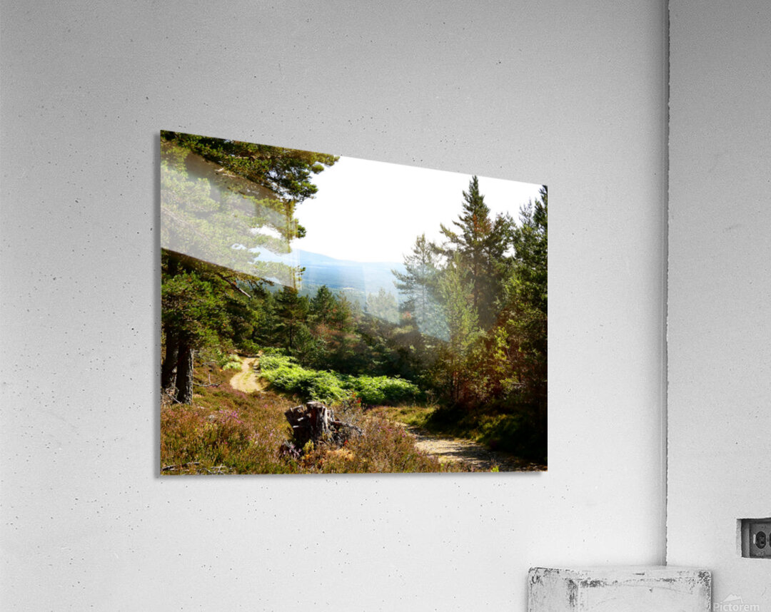 I took this photo during a lovely summer nature walk through the Scottish Highlands. Features a winding dirt path meandering through a dense forest fi...[+]