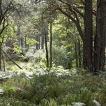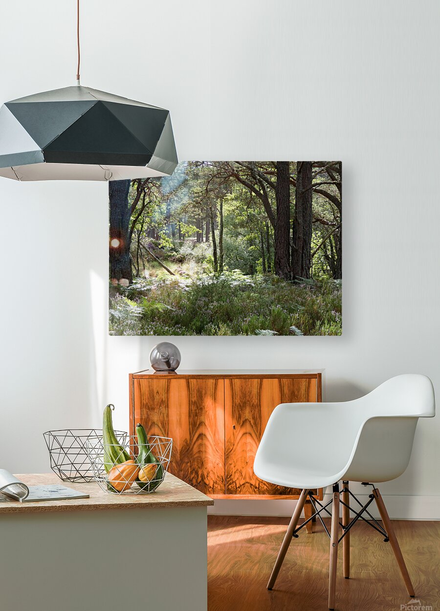 I took this photo during a lovely summer nature walk through the Scottish Highlands. Features sunlight filtering through the dense canopy of a serene ...[+]
