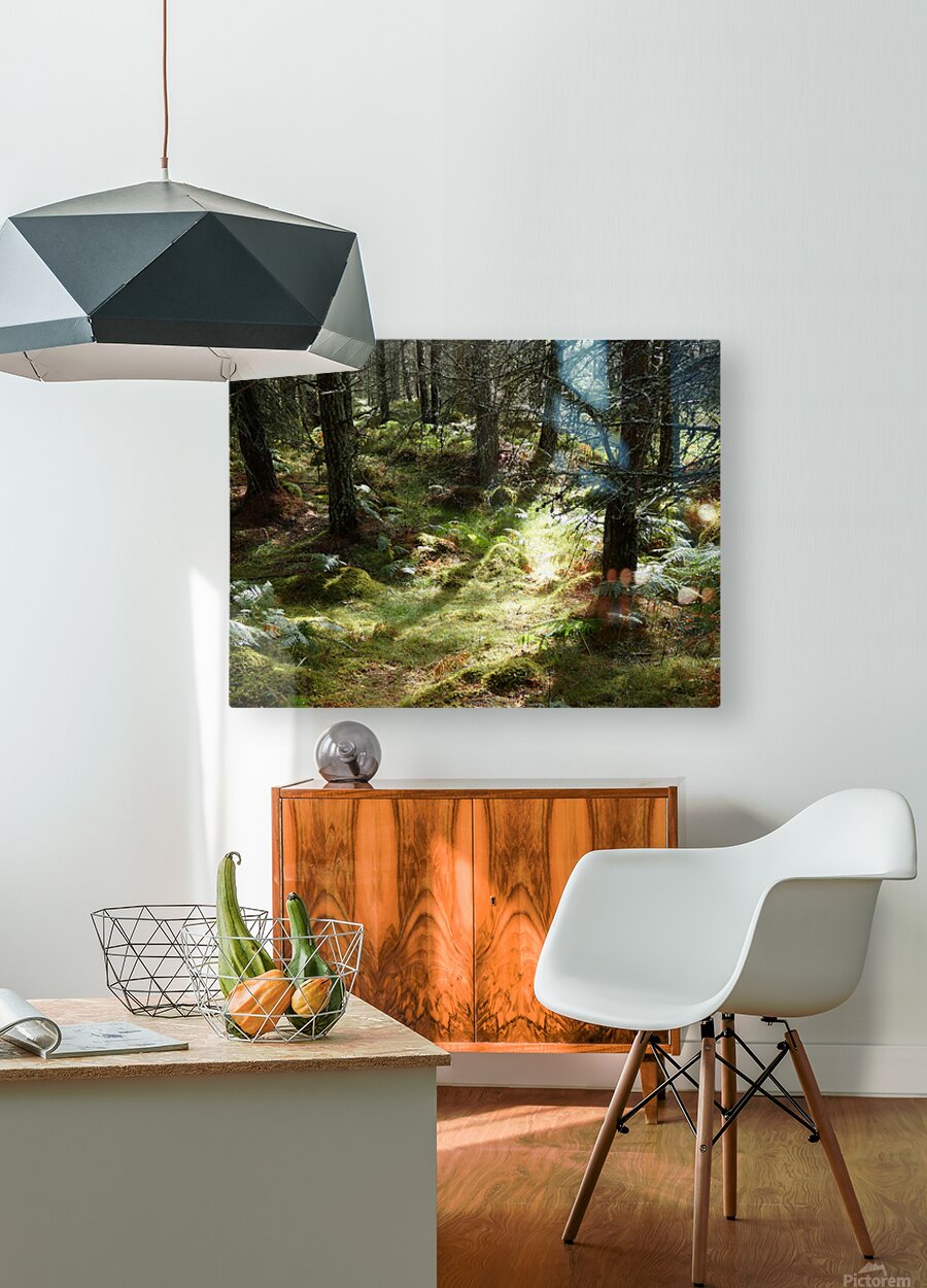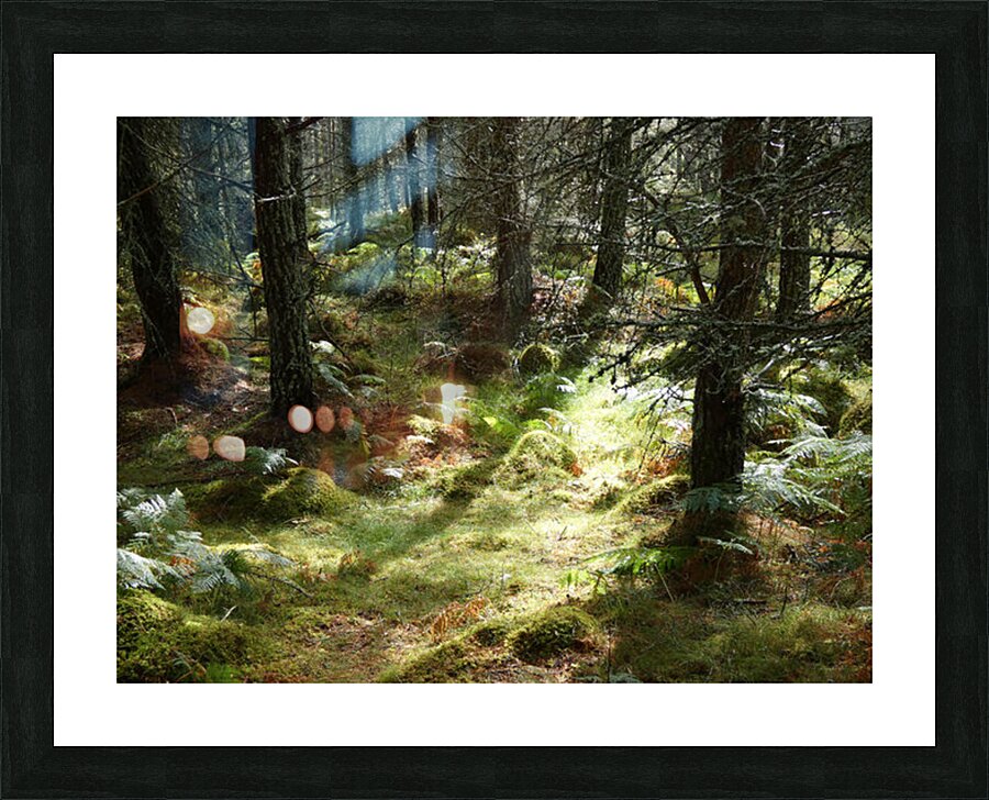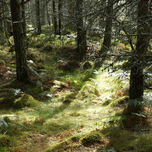 I took this photo during a lovely summer nature walk through the Scottish Highlands. Features sunlight filtering through dense Pine trees, highlightin...[+]