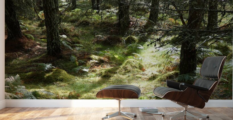 I took this photo during a lovely summer nature walk through the Scottish Highlands. Features sunlight filtering through dense Pine trees, highlighting a lush forest floor covered with ferns and moss. The scene evokes a sense of tranquility and natural beauty, inviting exploration and quiet reflection.