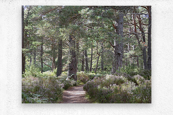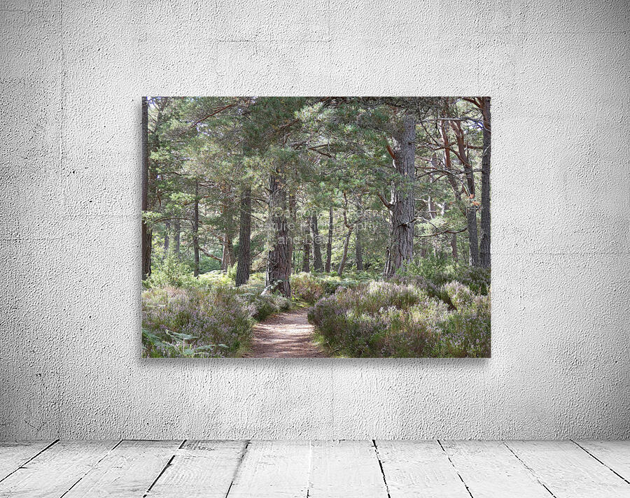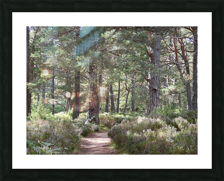 I took this photo during a lovely summer nature walk through the Scottish Highlands. Features tall Pine trees with dense foliage creating a serene forest scene, with a narrow path meandering through the underbrush. Sunlight filters through the leaves, casting dappled light on the ground and enhancing the vibrant greens and earthy tones of the forest.