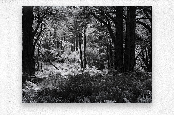 I took this photo during a lovely summer nature walk through the Scottish Highlands. Features sunlight filtering through the dense forest, casting intricate shadows on the undergrowth. Tall Pine trees, with their rough bark and sprawling branches, can be seen in the foreground while Birch trees quietly stand in the background, creating a serene and undisturbed atmosphere.