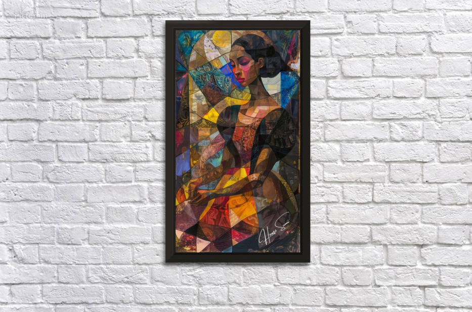 001 – "Whispers of Dawn" Amani sits in quiet reflection, her hands gently clasped as if holding the morning light. Bathed in warm reds, golds, and blues, her essence is both serene and knowing. The layered mosaic hints at a journey inward—where color meets memory and silence speaks.