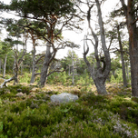 I took this photo during a lovely summer nature walk through the Scottish Highlands. Features tall, twisted Pine trees standing amidst lush green foli...[+]