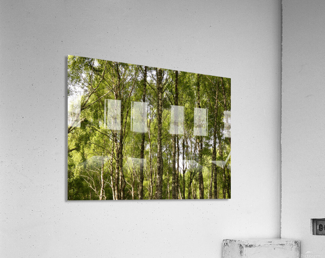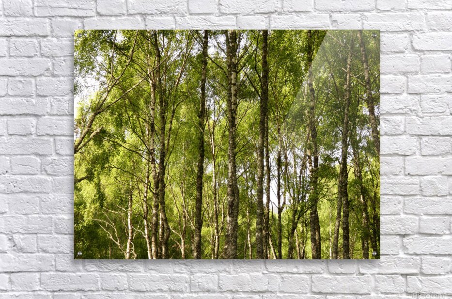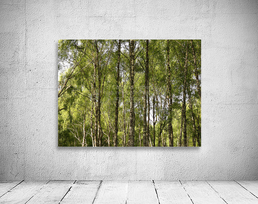 Get this artwork "Scottish Highlands Green Birch Sunlight" in a framed print.