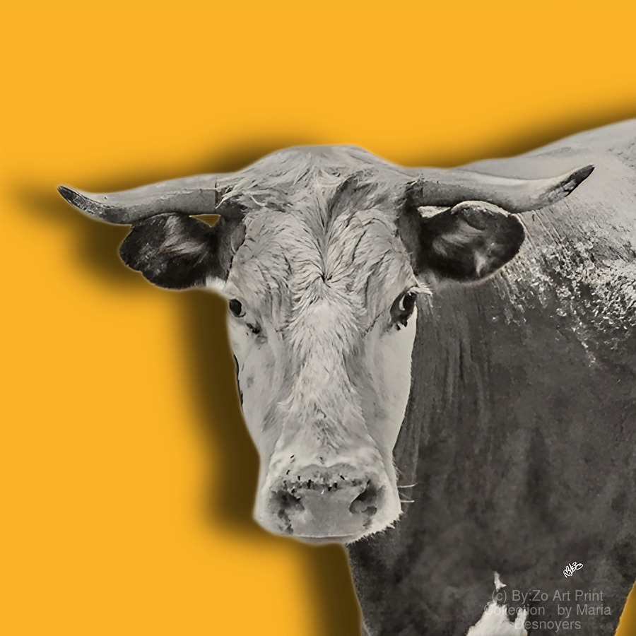 FARM COW ORIGINAL ABSTRACT PHOTOGRAPHY ON DARK YELLOW BACKGROUND