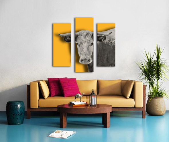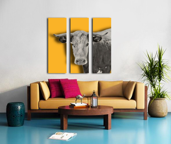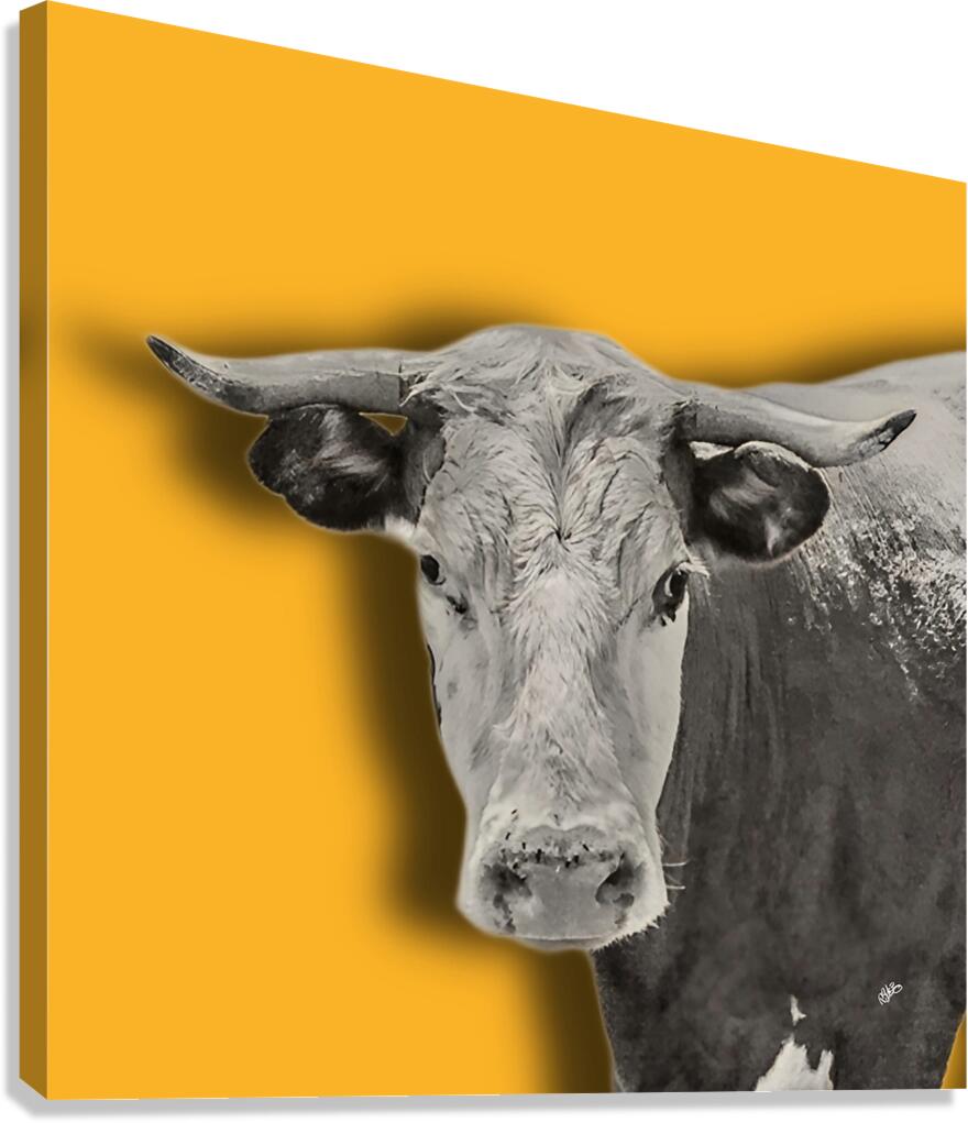 FARM COW ORIGINAL ABSTRACT PHOTOGRAPHY ON DARK YELLOW BACKGROUND BY:ZO ART PRINT COLLECTION   BY MARIA DESNOYERS  Canvas Print