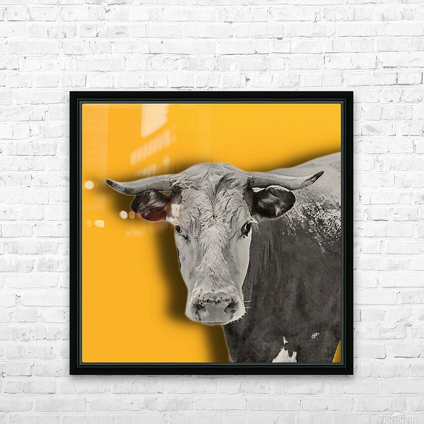 Farm Cow Original Abstract Photography on Dark Yellow Background Wall Decor Frame