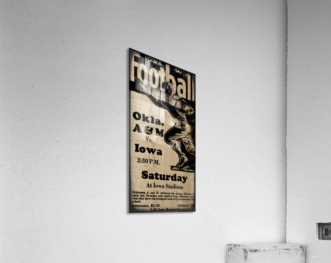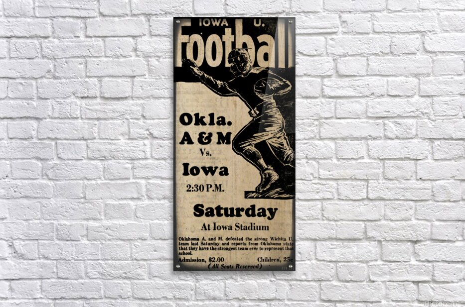 The visiting Oklahoma A&M Cowboys beat the Iowa Hawkeyes on the road 6-0 in this 1930 college football game in Iowa City. Remixed for the aesthetics of a vintage viewfinder slide, this vintage college football wall art will look great in your home or office.